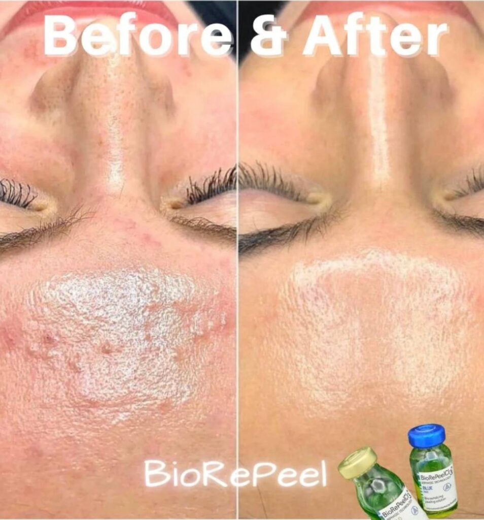 BioRePeel uses a blend of acids, amino acids, and vitamins to exfoliate, hydrate, and rejuvenate the skin — with little to no downtime. BioRePeel provides instant glow and texture improvement while supporting long-term skin health. Safe for all skin types and all seasons.